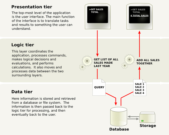 - Současné webové aplikace jsou strukturovány do více vrstev, tradičně se uvádějí tři základní vrstvy: