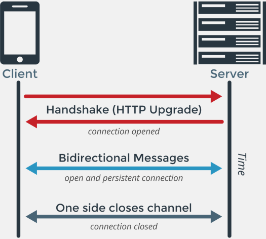 - WebSocket je nezávislý počítačový komunikační protokol, poskytující plně duplexní (obousměrný) komunikační kanál přes jediné TCP připojení.